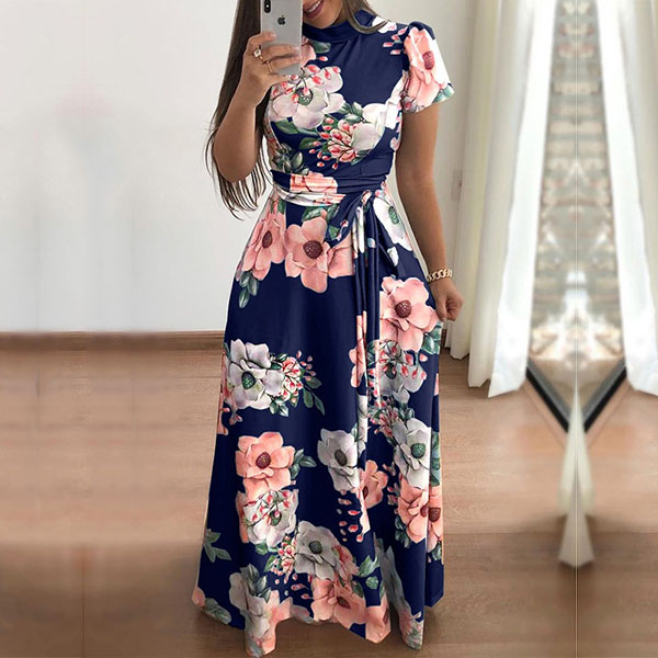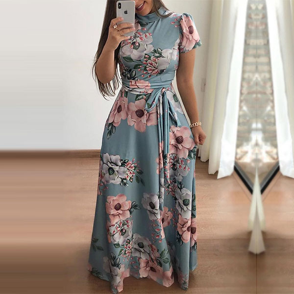 win more eyes. Outfitted with short sleeve,mock neck and high waist design,this beautiful dress