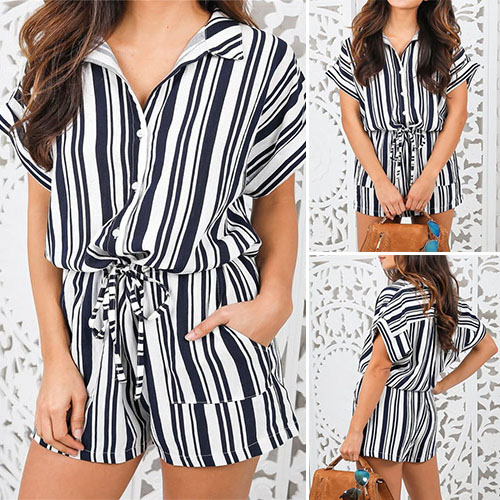 finite your stylish and edgy style with the help of this romper! Striped style,designed with short sleeve,POLO collar and a lace-up