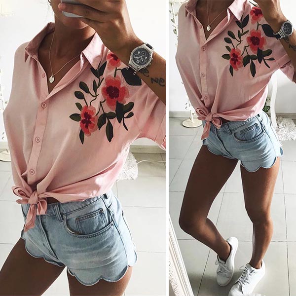 For these office ladies,this delicate yet stylish shirt is a good choice. Boasts a sweet pink,decorated with