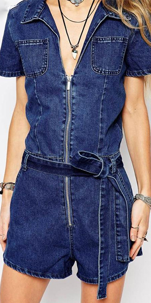 POLO collar,zipper front and a removable self-tie belt,this denim romper can add a touch of retro,stylish and