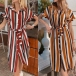 shirt dress! This striped shirt dress is finished with short sleeve,POLO collar and single-breasted design,