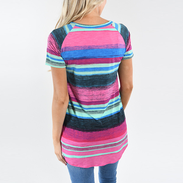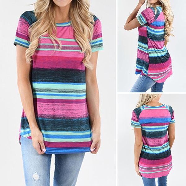 For a simple,casual,cozy yet stylish style,the t-shirt is a good choice. That's why we suggest you this t-shirt. Colorful striped style,