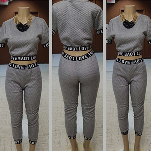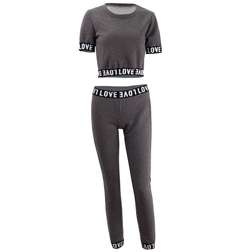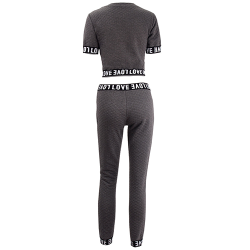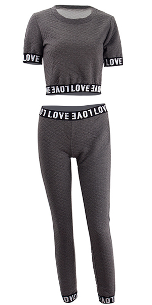 a short sleeve round neck crop tops and a high waist pants,and its letters printed design makes
