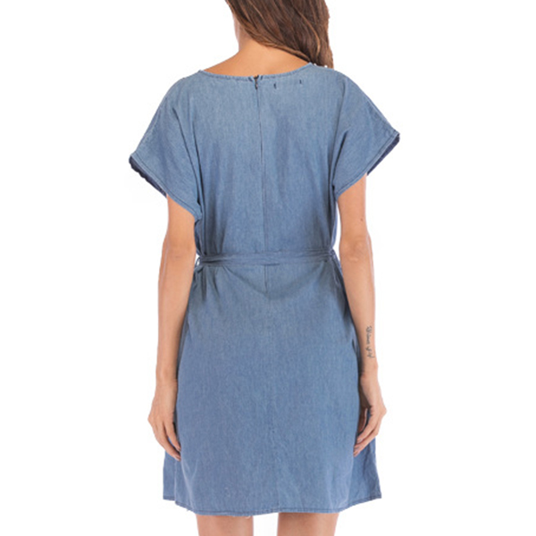 Your daily style can have a boost with this denim dress. Finished with short sleeve and round