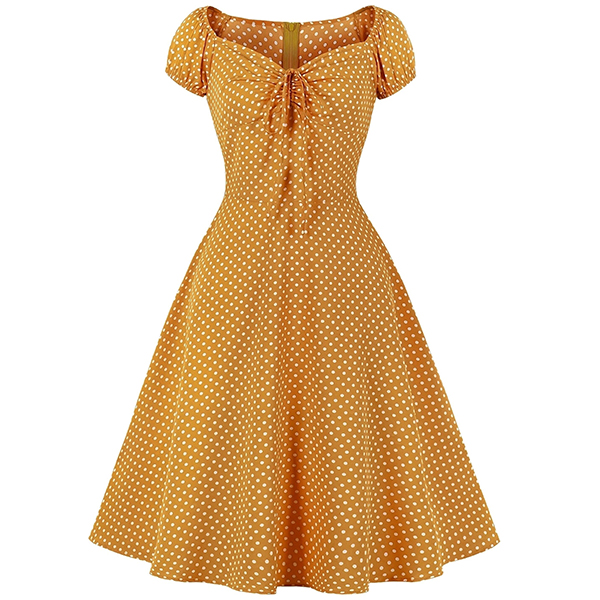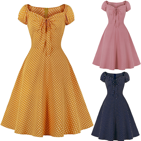 Looking for a dress that is versatile for both work or weekends,then opt for this dress! Designed with short sleeve and round neck,the dots printed design will offer you a more playful and eye-catching look.Add this dress to your wardrobe and it won't let you disappointed!