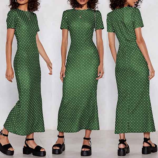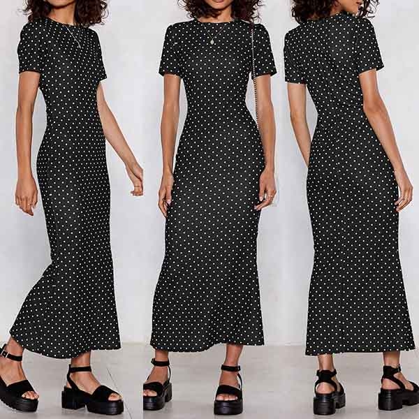 The dots printed design will give you a more eye-catching and playful look,while the fishtail hem design can