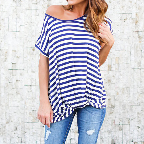 Striped piece has been a prevailing style for many occasions,that's why we suggest you this striped t-shirt! Crafted from soft