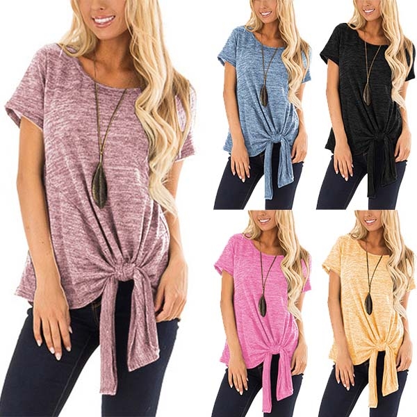 with short sleeve and round neck design,the knotted hem design makes it look so distinctive.