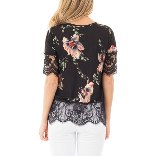 with short sleeve,round neck and cozy fabric,this t-shirt can give you a cool and comfortable day. And its lace