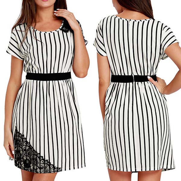 and soft fabric,this dress can promise you an all-day comfort. The combination of stripe and lace element