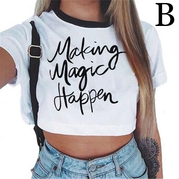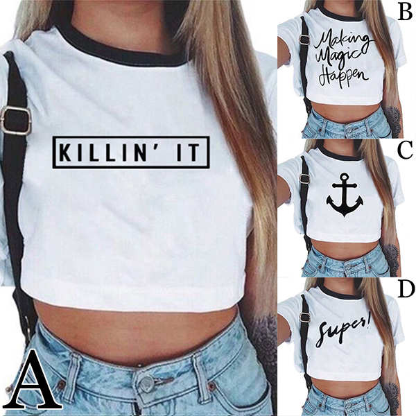 Wanna showcase your slender and seductive waist? Then slip into this crop top! Letters printed style,designed with short sleeve,
