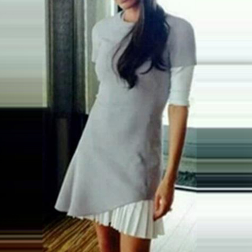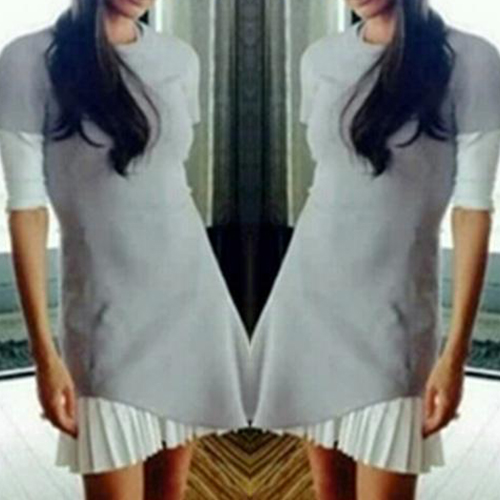 Outfitted with short sleeve,round neck and pleated spliced hem,refined and stylish. Dress it up with your