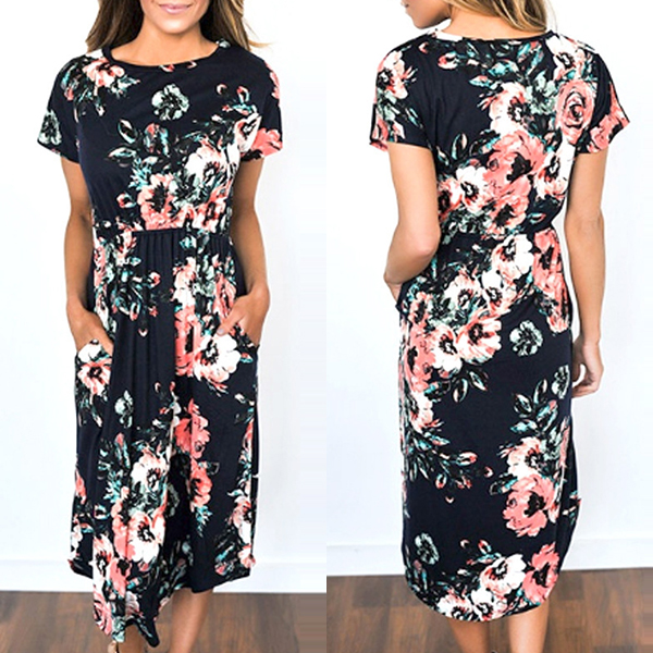 Express your love for floral print through this dress. Boasts playful and vibrant floral print,with short sleeve,round neck and