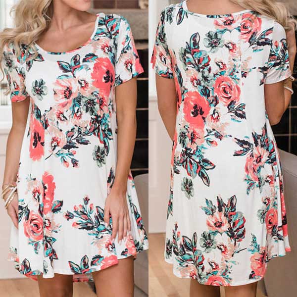 round neck and vibrant floral print,this dress can ensure you a comfortable day with its soft and breathable fabric.