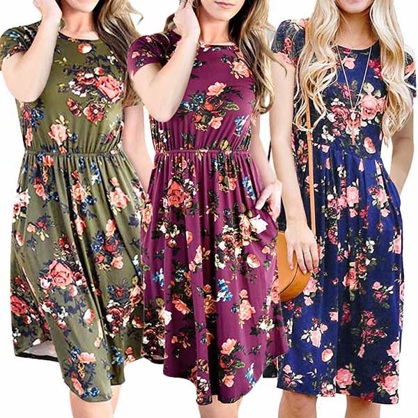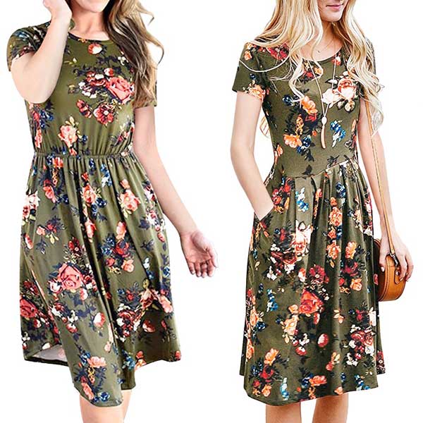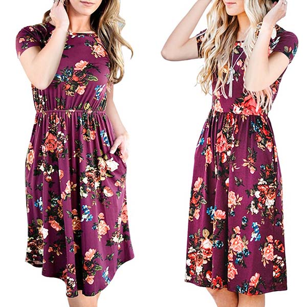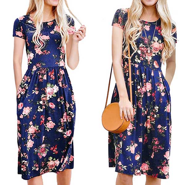 It boasts vibrant floral print,with short sleeve and round neck design,simple,cozy yet stylish.