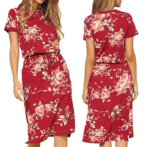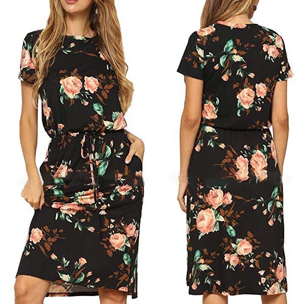 with short sleeve and round neck design,classic yet stylish. The drawstring waist design can better