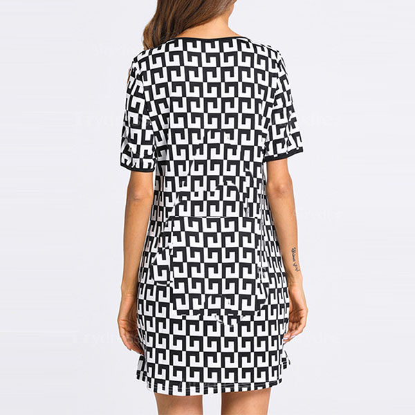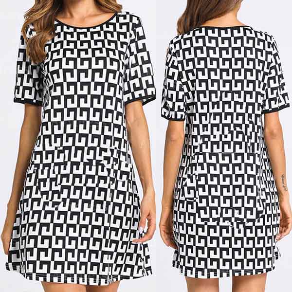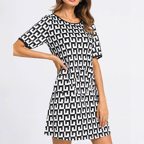 fabric,with short sleeve,round neck and a loose silhouette,this dress is sure to give you a cozy yet stylish style.