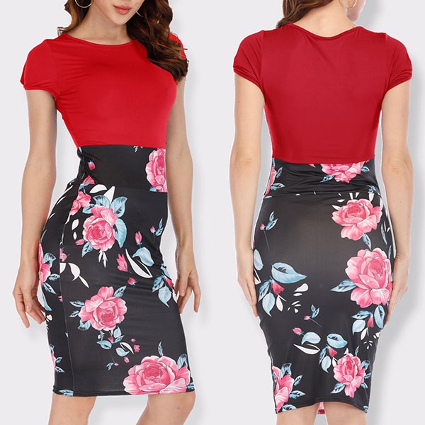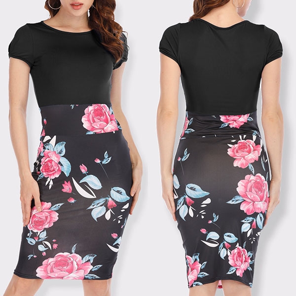 the printed spliced design will make this dress look more attractive. Add this dress to your