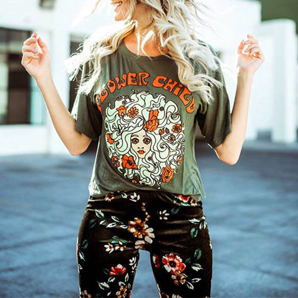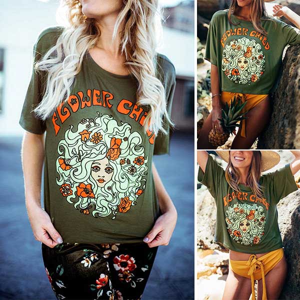 season. Features chic printed pattern,with short sleeve,round neck and a loose silhouette,this t-shirt can