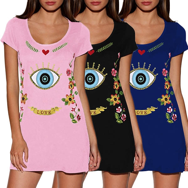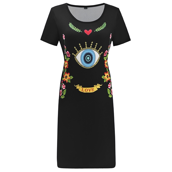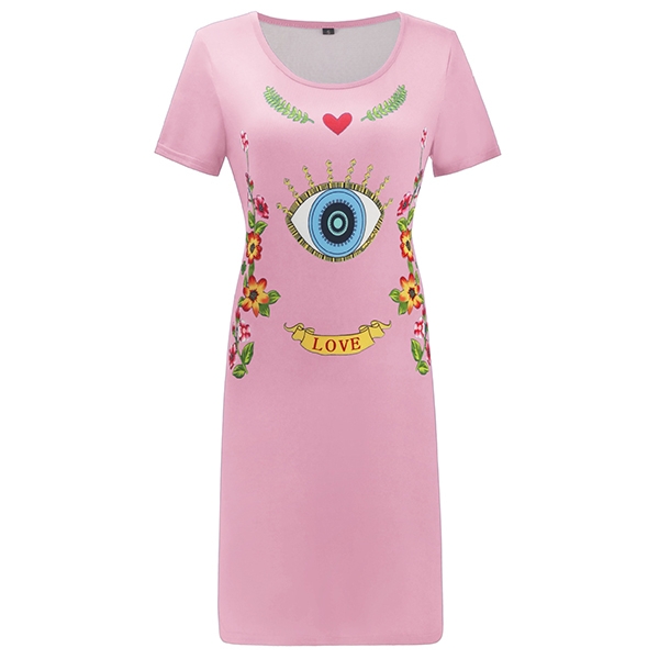 The chic and eye-catching printed pattern design will enhance its charm. Finished with short sleeve,round neck