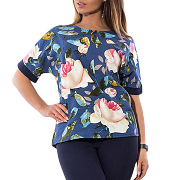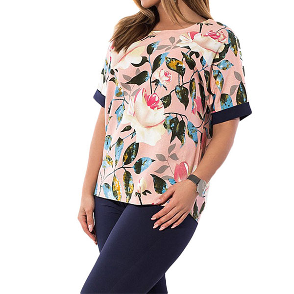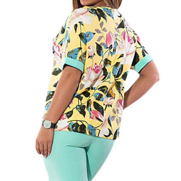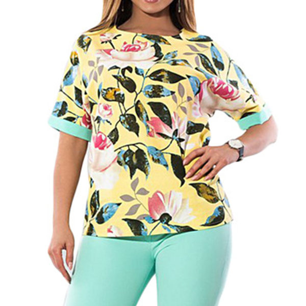 set would be a good choice. Including a short sleeve round neck printed top and a high waist pants,this