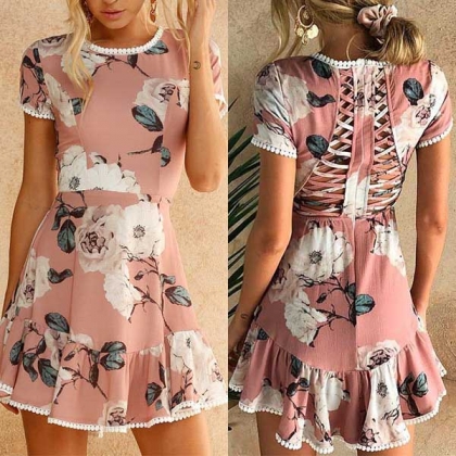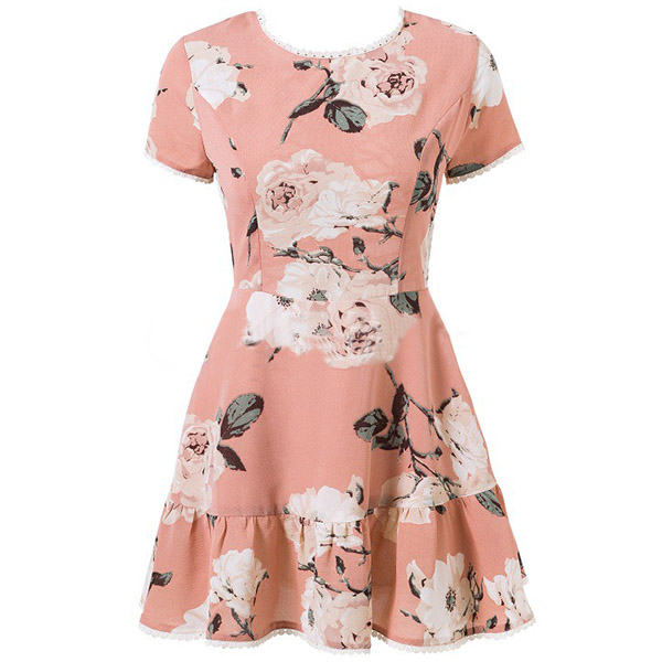 vibrant floral print design makes this dress look so charming,while the ruffle hem and hollow out design