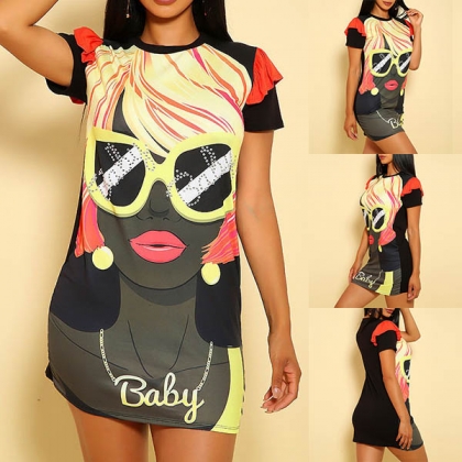 and playful printed pattern. Finished with short sleeve,round neck and a fit silhouette,this dress also can