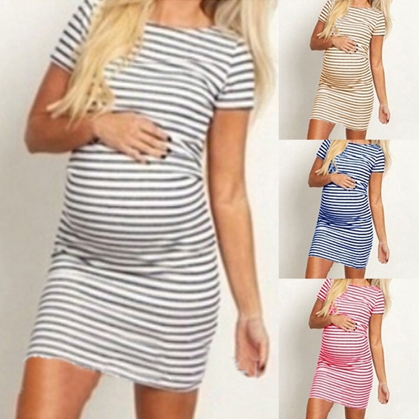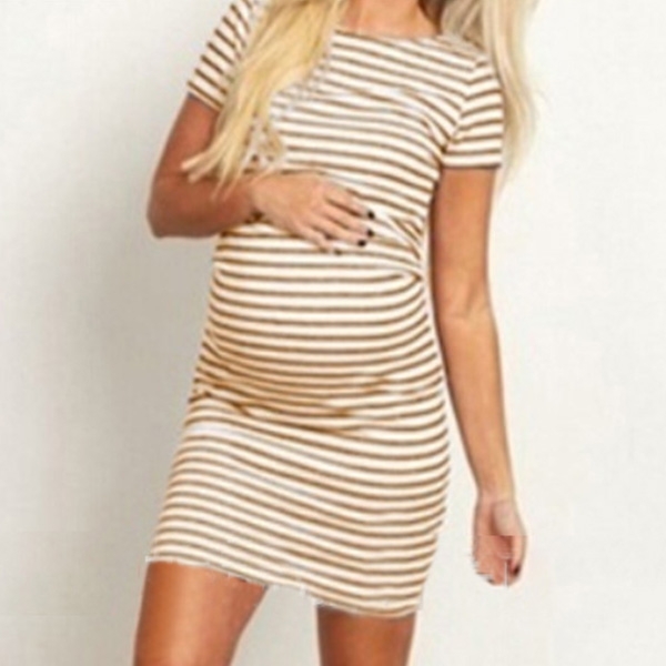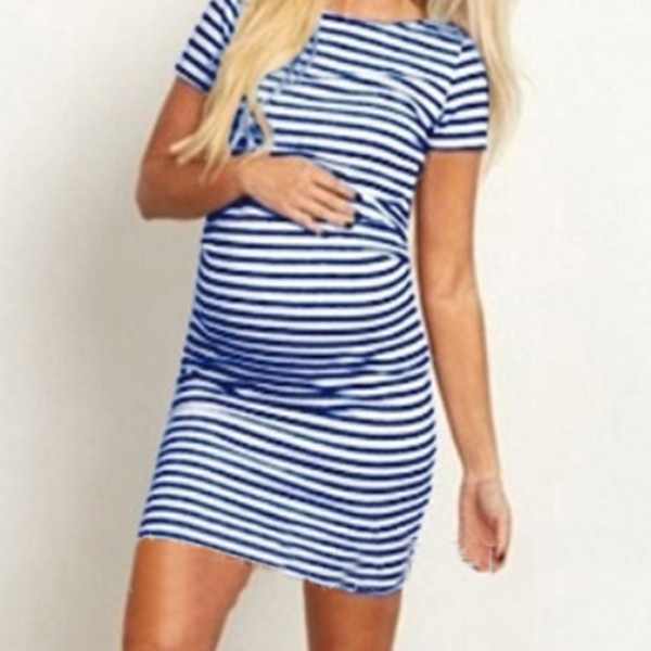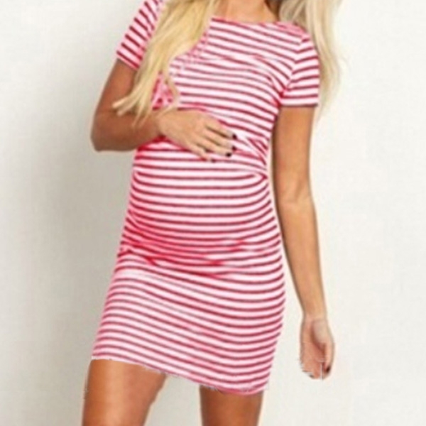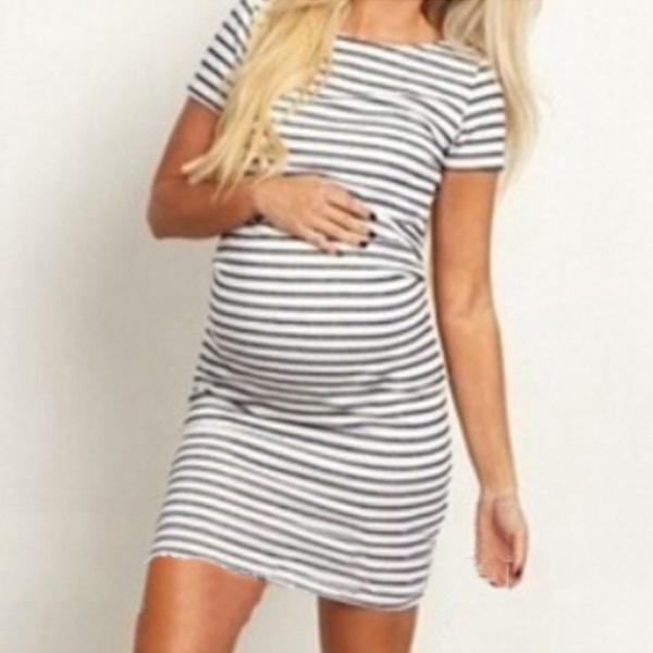 striped dress. It is finished with short sleeve,round neck and a clean silhouette,simple in design style,