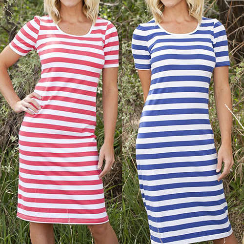 than this dress! Striped style,with short sleeve and round neck design,simple but stylish. Cozy