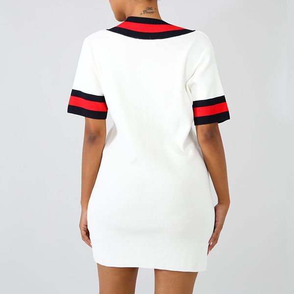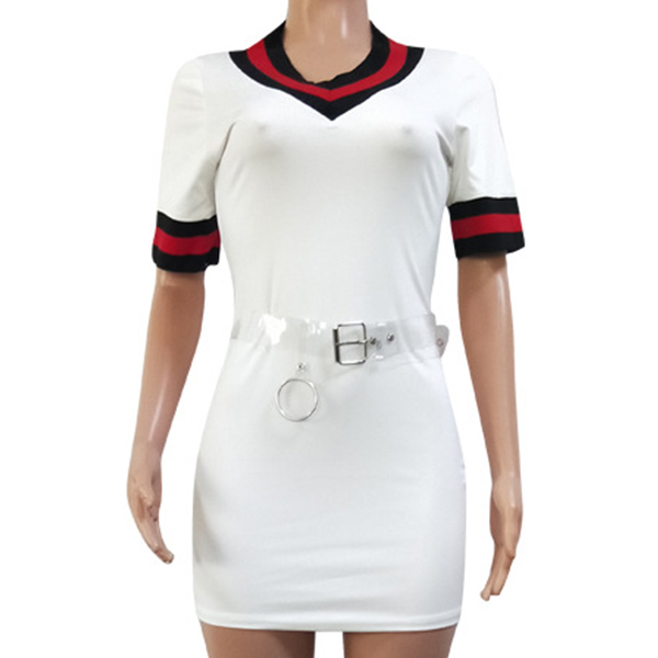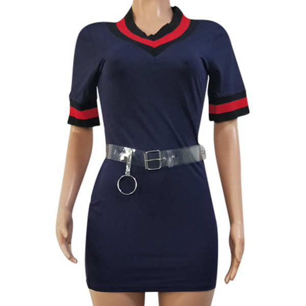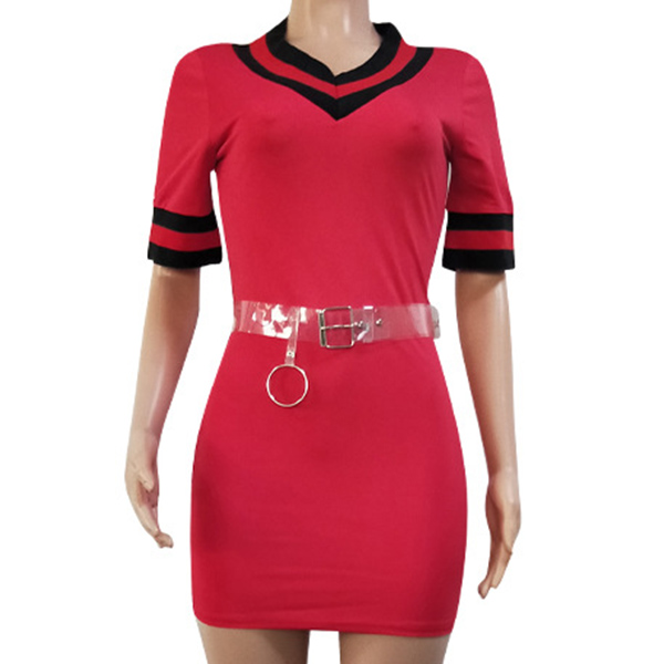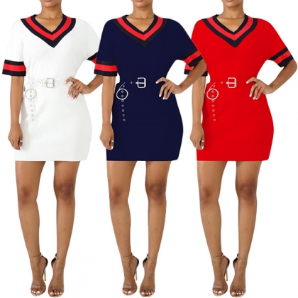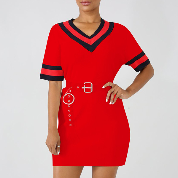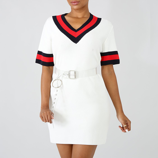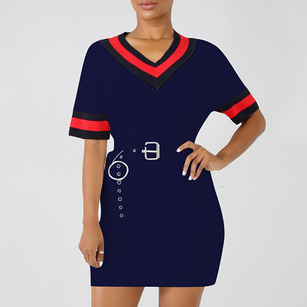 Boost your style with the help of this dress. Contrast color style,with short sleeve and v-neck design,