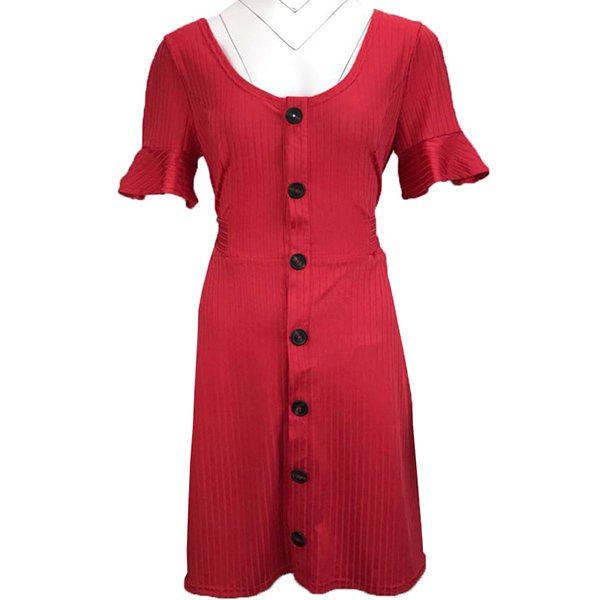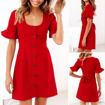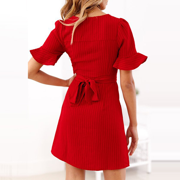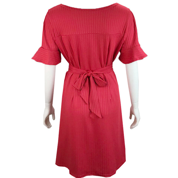 This dress is designed with a bright and eye-catching red tone,finished with short sleeve,
