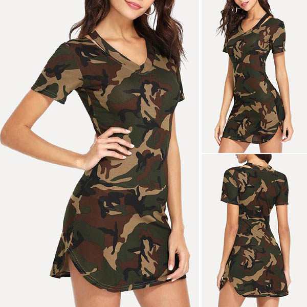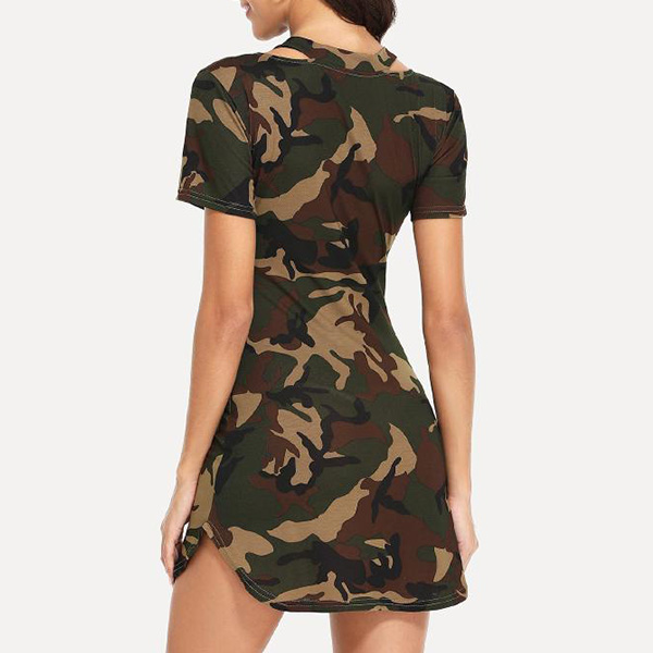 On some rushed mornings,this dress can be a good choice. The camouflage printed design makes it look so