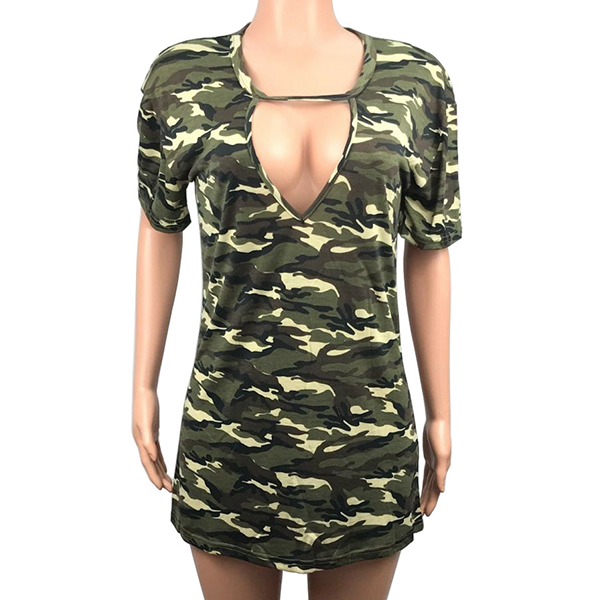 When it comes to a cozy yet feminine style,you can count on this dress. Camouflage printed style,designed with short sleeve,