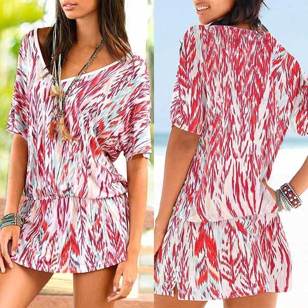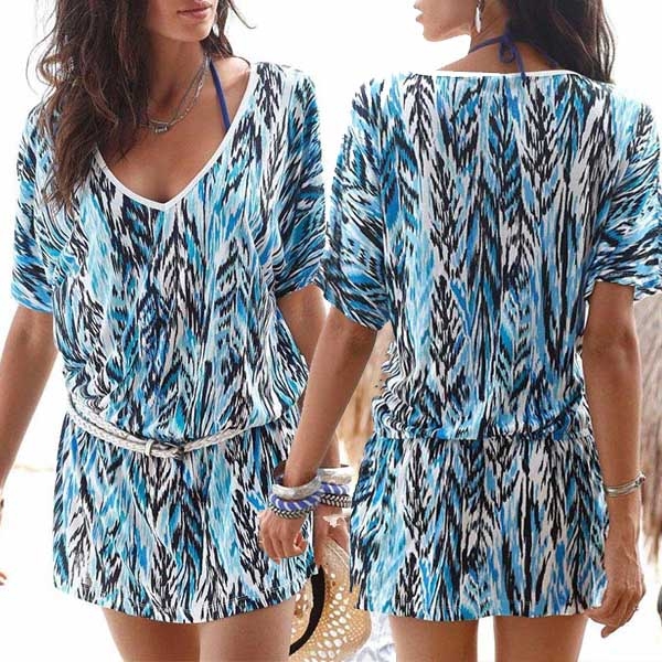 Finished with short sleeve and v-neck design,this dress can offer you a comfortable day with its soft and