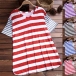 The contrast color striped design makes it look so eye-catching and stylish. Finished with short sleeve and round neck