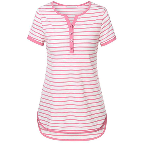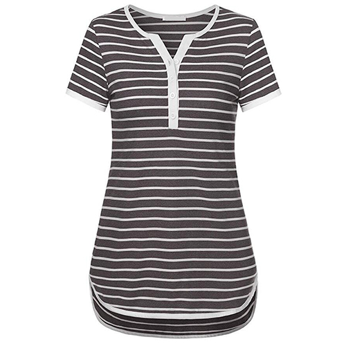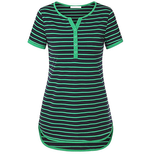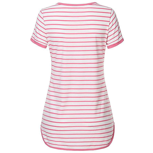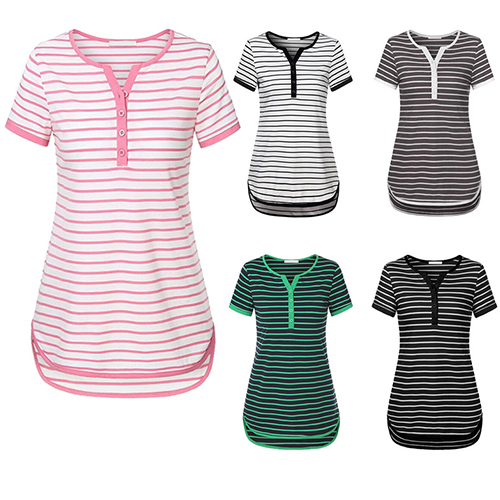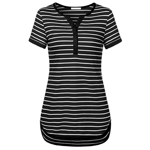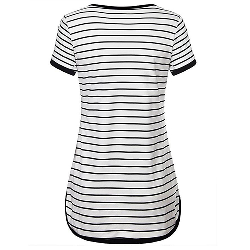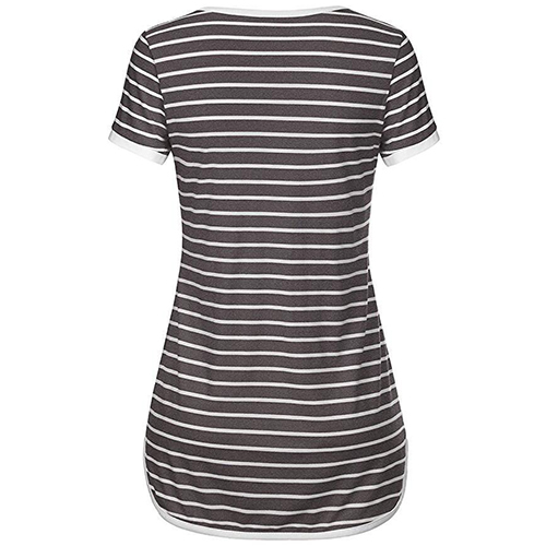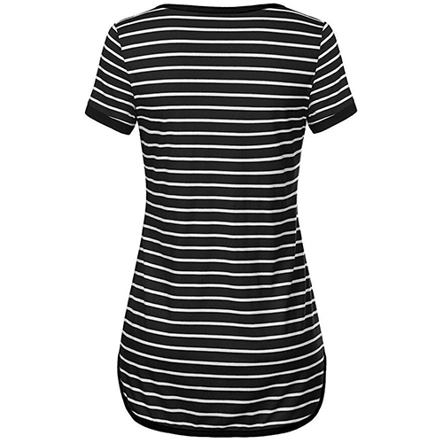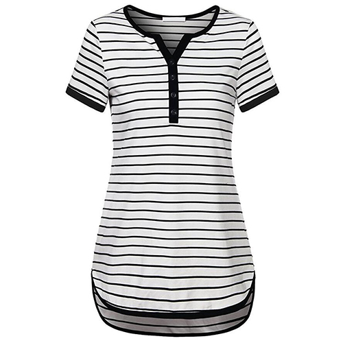 Style and comfort come together so perfectly in this t-shirt! Striped style,designed with short sleeve,v-neck,a high-low hem and crafted from