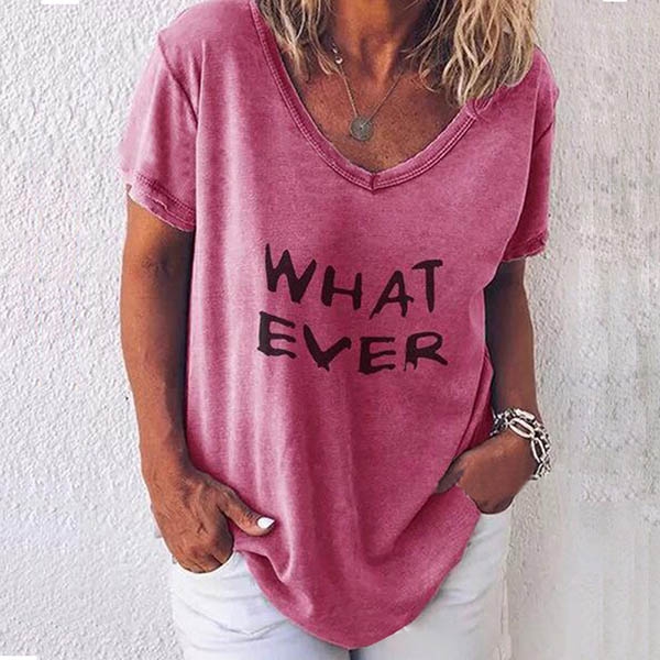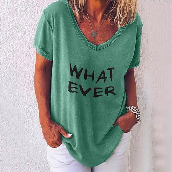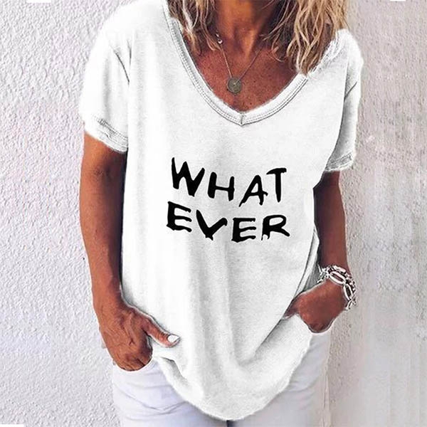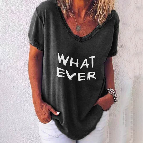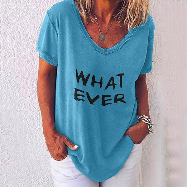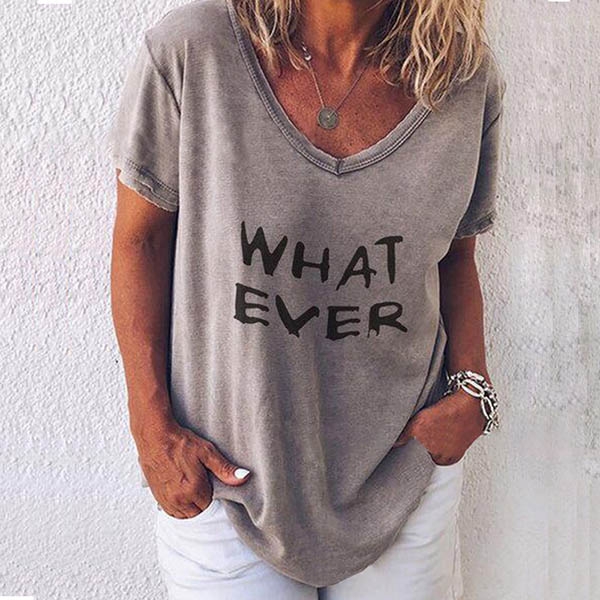 with v-neck,short sleeve and letters printed design,simple,cozy and stylish. Add one to your