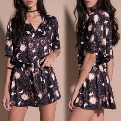 This dress is crafted from soft and breathable fabric,with short sleeve,v-neck and a loose silhouette,