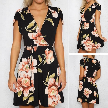 print,with short sleeve,v-neck and a clean silhouette,this dress can give you an easy transition from weekend trips to