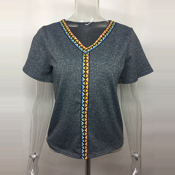 v-neck and a loose silhouette,this t-shirt can give you a comfortable day. And its printed spliced design makes it look