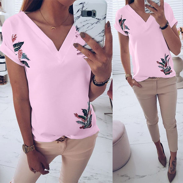 v-neck and soft fabric,this t-shirt will promise you a comfortable day. All-match style allows it to
