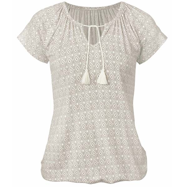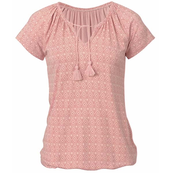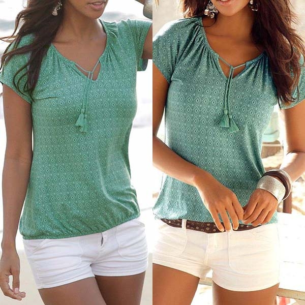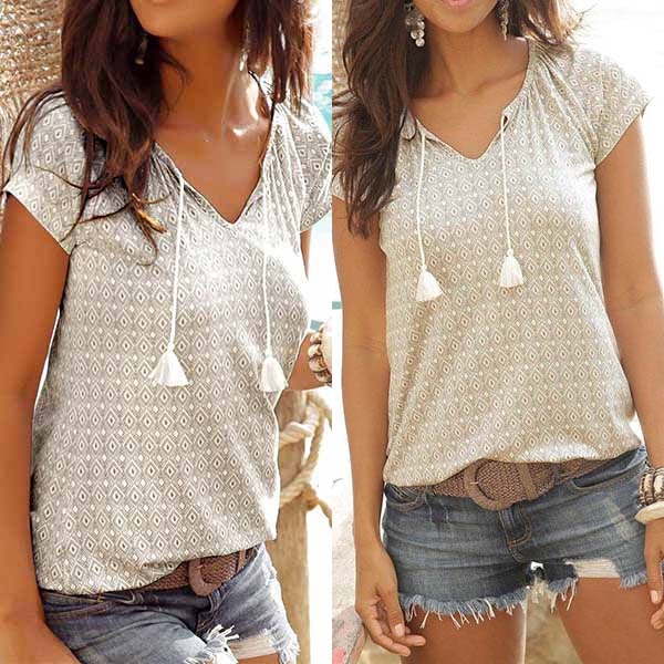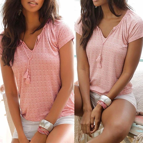 This t-shirt is designed with chic printed pattern,which makes it look no so simple. Finished with short sleeve and v-neck design,the tassel