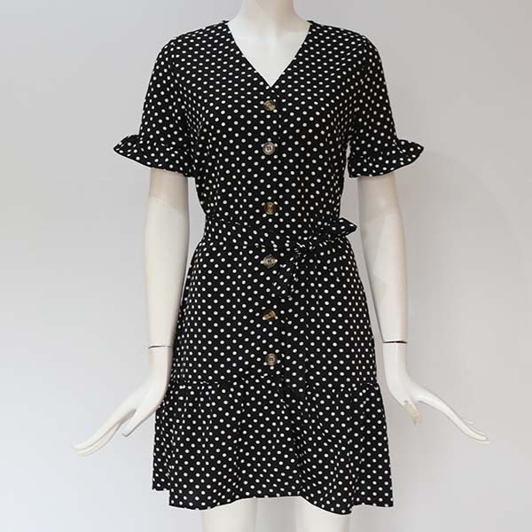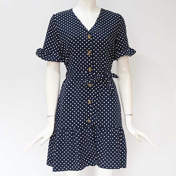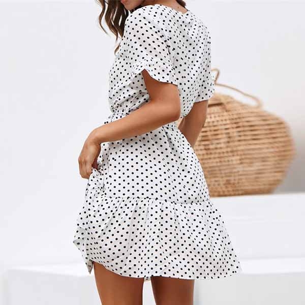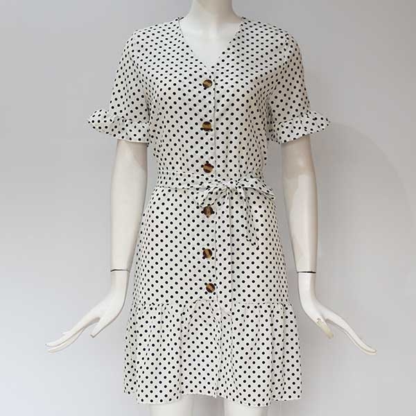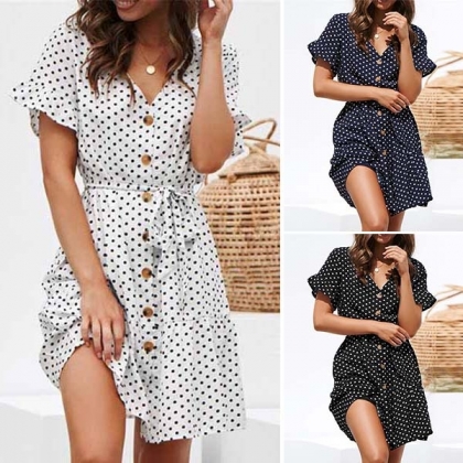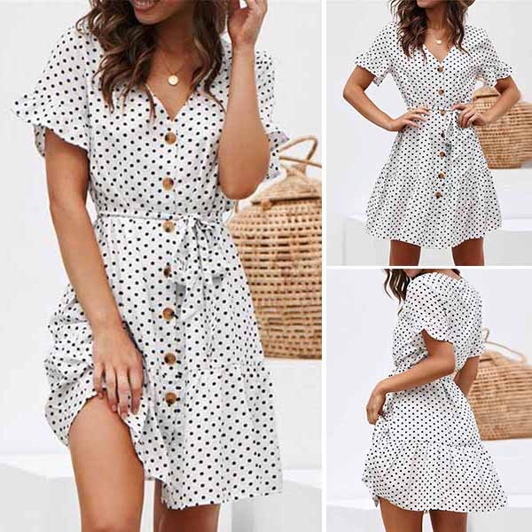 It is easy to achieve for a fresh and sweet look with this dress. The dots printed design makes it look so eye-catching,while the v-neck,