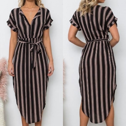 As a modern woman,I think you need such a dress. Striped style,finished with short sleeve,