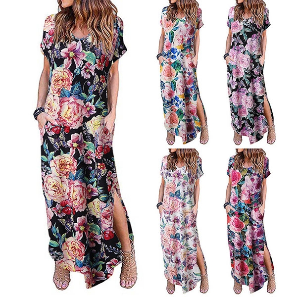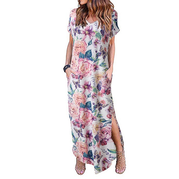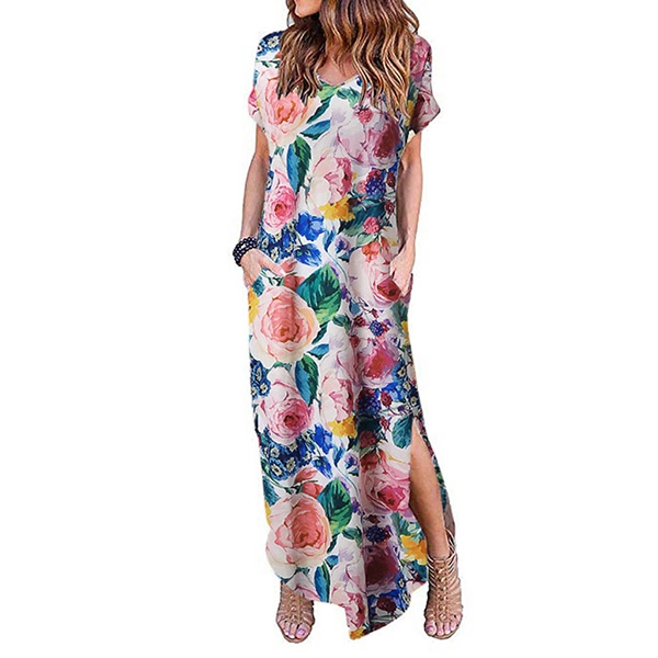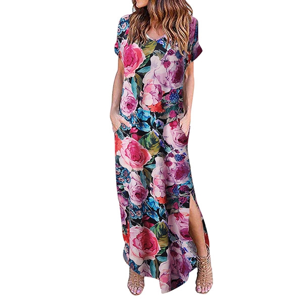 Finished with short sleeve,v-neck,slit hem and a maxi length,this dress can make you be a pleasant