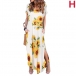 printed details,with short sleeve,v-neck and slit hem design,this dress can make you look