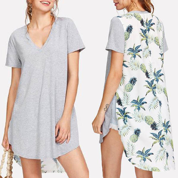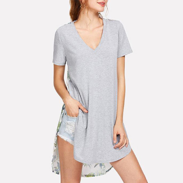 You can boost your style with the help of this chic t-shirt! The printed spliced design enriches the design style,
