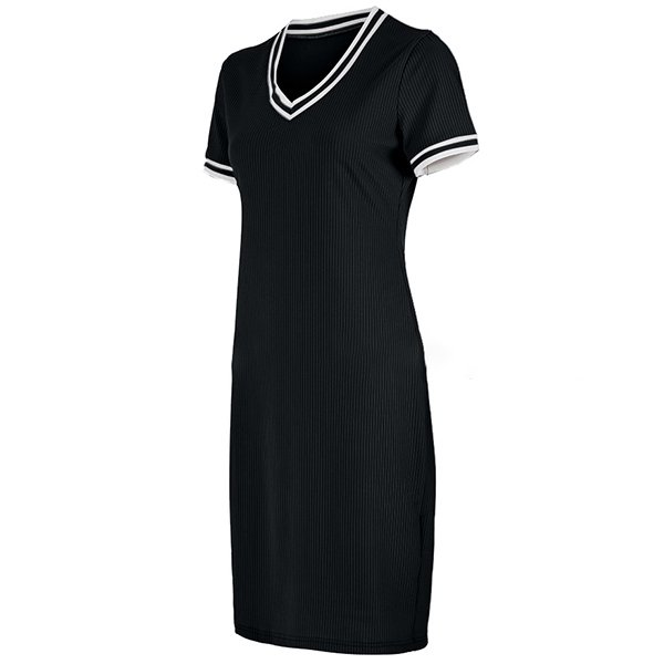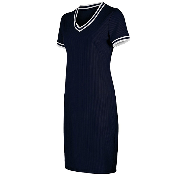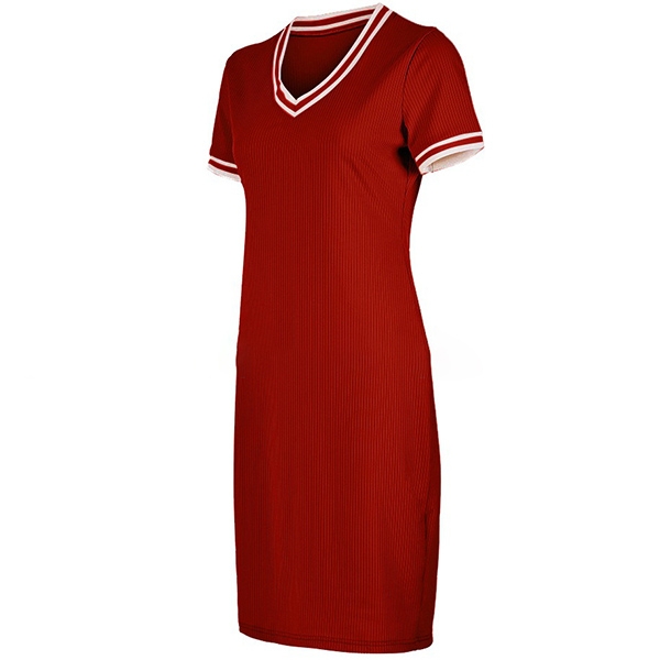 short sleeve,v-neck and a fit silhouette,this dress definitely can showcase your