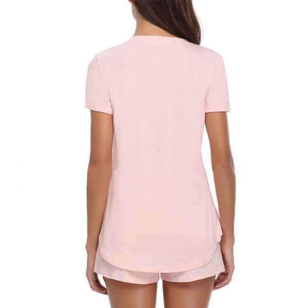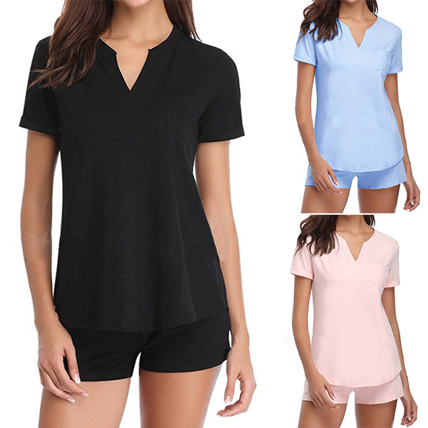 Solid color style,including a short sleeve v-neck top and a shorts,its super soft and breathable fabric can keep