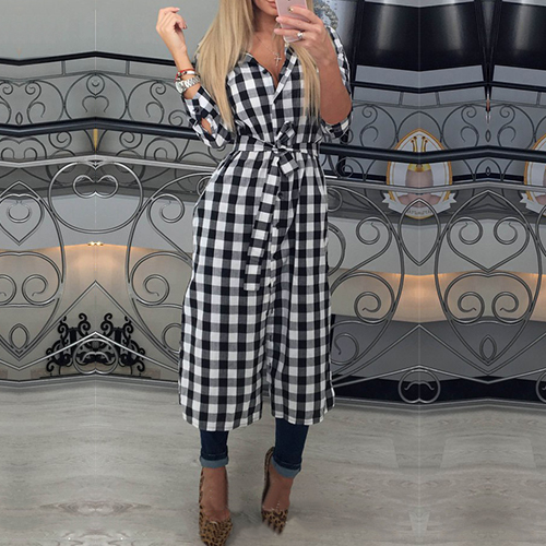 long sleeve and gathered waist design, this lattice dress can highlight your classic and stylish style.